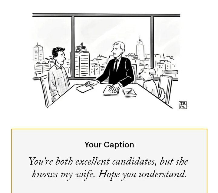 Can't remember what this contest number was. Sad! Published: December 30, 2021 newyorker humor caption contest image/svg+xml Openclipart Simple Horizontal Rule 1 2012-10-13T19:58:51 Simple horizontal rule designed to be used in a programme/ending of a chapter. Based on one seen in an out of copyright book called "The universe: or, The infinitely great and the infinitely small". https://openclipart.org/detail/172738/simple-horizontal-rule-1-by-nasfarley88-172738 nasfarley88 decoration horizontal rule